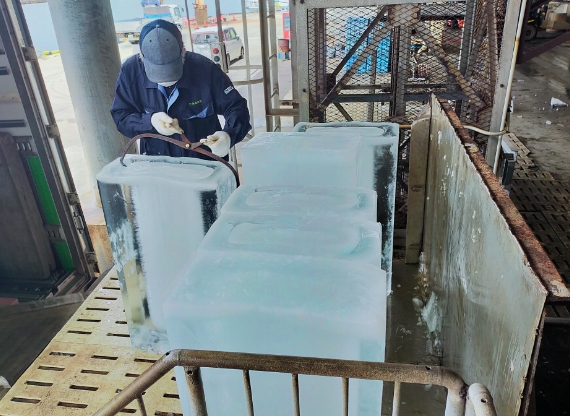 高鮮度な水産物を安定的に供給するため、漁や市場で使用される凍氷や漁業種別で使用する冷餌料等を販売しています。