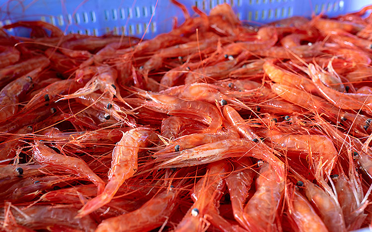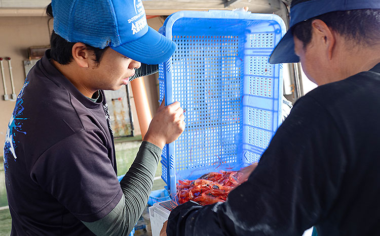 年中エビをとっています。春?秋くらいにタラバエビがとれるので、たくさん入るとみんなテンションが上がります。