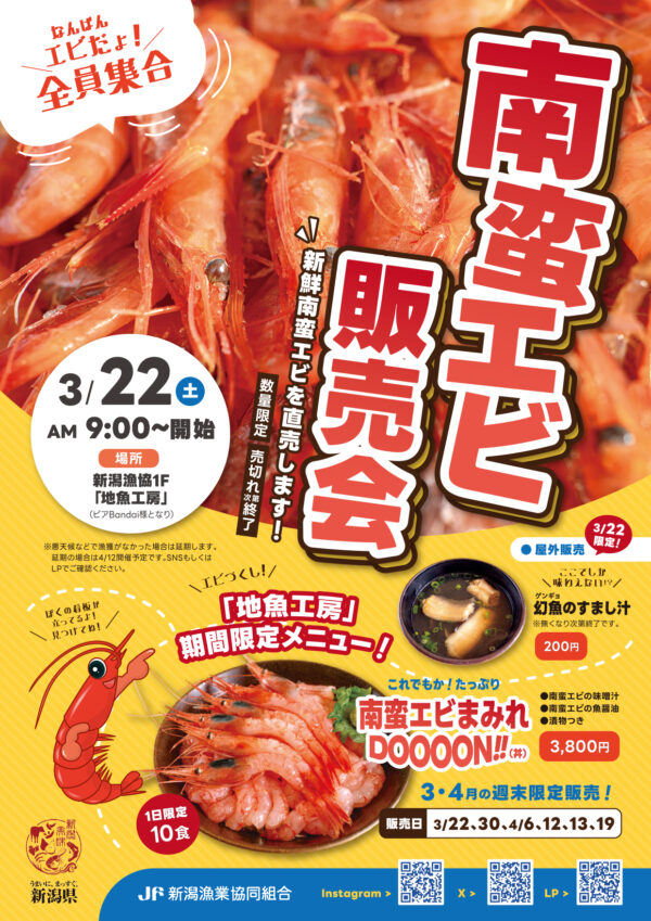 新潟の新鮮「南蛮エビ」直売会が開催されます。