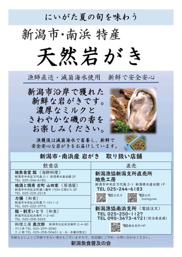 新潟県には岩牡蠣の美味しい地区がたくさんあります。