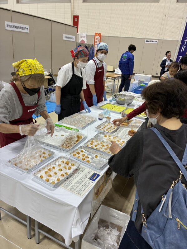新潟県漁業協同組合連合会も魚食普及の会様、そして新潟漁業協同組合様と共同のブースで出展いたしました。